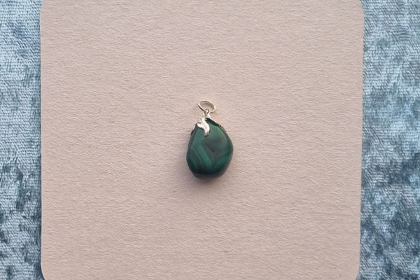 Draag deze Malachiet hanger dicht bij je hart en laat je inspireren door de kalmerende energie en het verhaal van de steen.