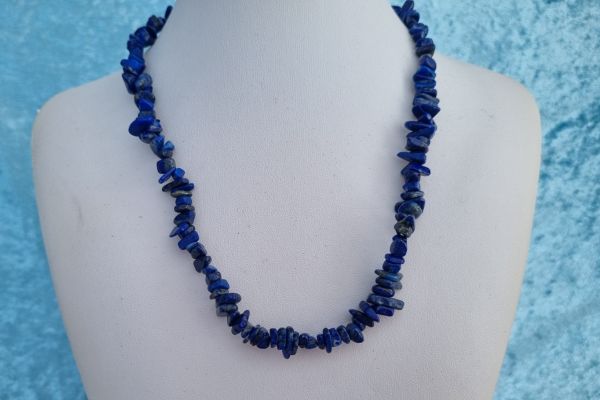 Deze splitketting van Lapis Lazuli is een prachtig sieraad van ongeveer 45 cm lang, ideaal voor elke gelegenheid. De diepblauwe Lapis Lazulistenen zijn elegant gerangschikt, waardoor ze een luxe uitstraling creëren. Lapis Lazuli staat bekend om zijn spirituele eigenschappen, bevorderend voor wijsheid en zelfexpressie.