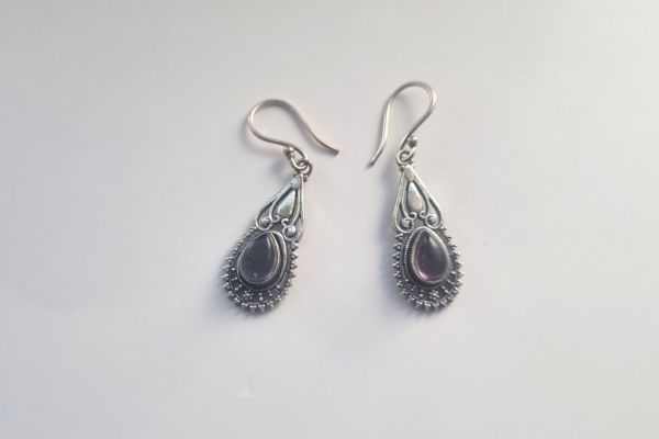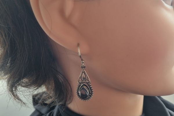 Deze sierlijke BOHO oorbellen combineren een verfijnd ontwerp met de mystieke uitstraling van Amethist. De druppelvormige, paarse edelstenen worden omlijst door een elegant, bloemachtig patroon in zilverkleurig metaal, subtiel afgewerkt met hartvormige uitsparingen die het geheel een romantische en spirituele uitstraling geven.