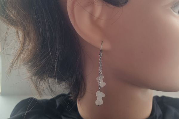 De Veda oorbellen zijn een subtiele ode aan natuurlijke schoonheid en liefdevolle energie. Gemaakt van duurzaam 304 stainless steel en afgewerkt met zorgvuldig geselecteerde splitsteentjes van Rozenkwarts, stralen deze oorbellen een zachte en verfijnde elegantie uit. De fijne schakels en de speelse beweging van de steentjes zorgen voor een licht en luchtig ontwerp dat moeiteloos te combineren is.
