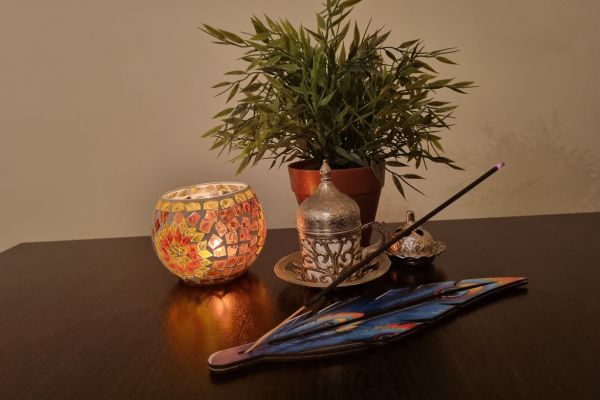 De wierookhouder Pauw is een sierlijk en kleurrijk accessoire dat de pracht van een pauwenveer op artistieke wijze tot leven brengt. Het ontwerp is rijk gedetailleerd met oogvormige patronen in levendige tinten blauw, groen, geel, rood en zwart, die samen een iriserend effect creƫren dat doet denken aan echte pauwenveren. In het midden van de houder bevindt zich een subtiele sleuf waarin wierookstokjes eenvoudig geplaatst kunnen worden. Pauw is niet alleen een functioneel item voor het branden van wierook, maar ook een decoratief pronkstuk dat elegantie en kleur toevoegt aan elke ruimte.