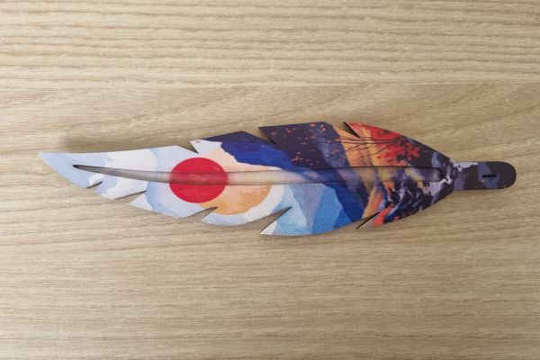 Laat de rust van de ondergaande zon in je huis neerdalen met de Wierookhouder Sunset. Deze houder in de vorm van een sierlijke veer is bedrukt met een prachtig, kleurrijk ontwerp dat de serene sfeer van een zonsondergang oproept. De warme tinten en artistieke details brengen een vleugje natuur en harmonie in je interieur, terwijl de wierook langzaam haar geur verspreidt.